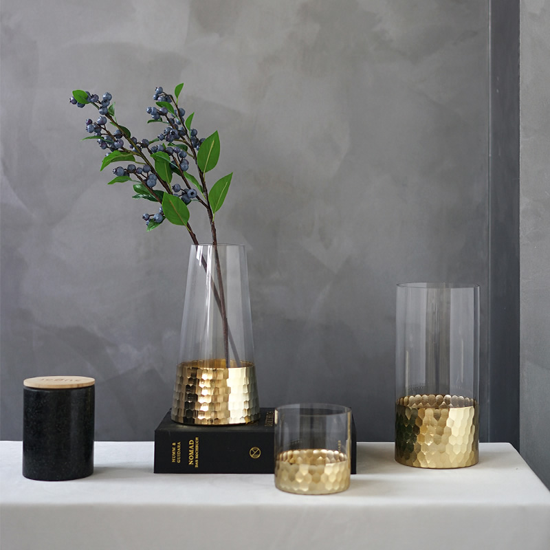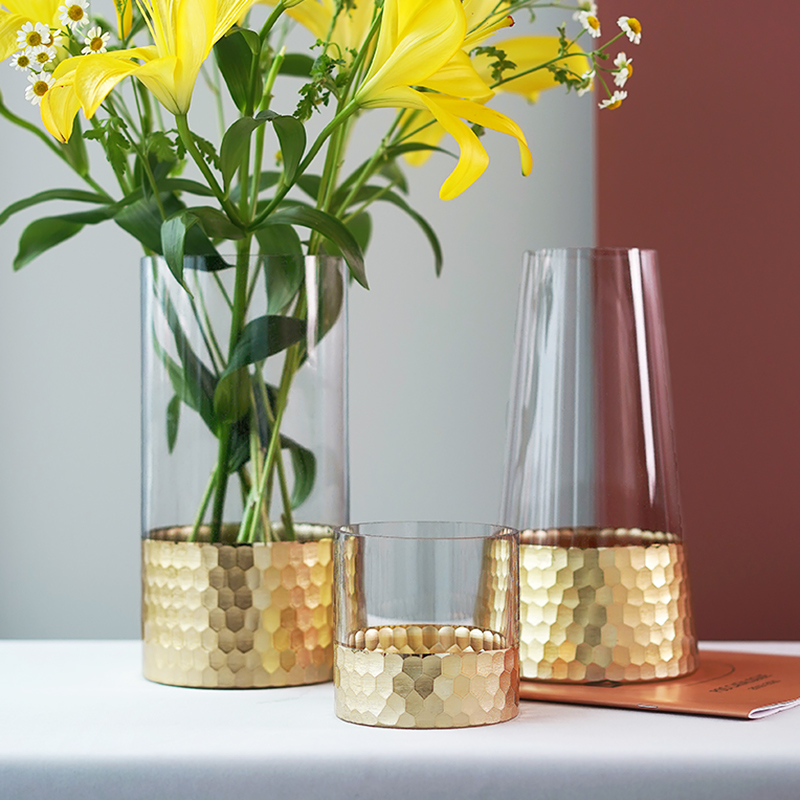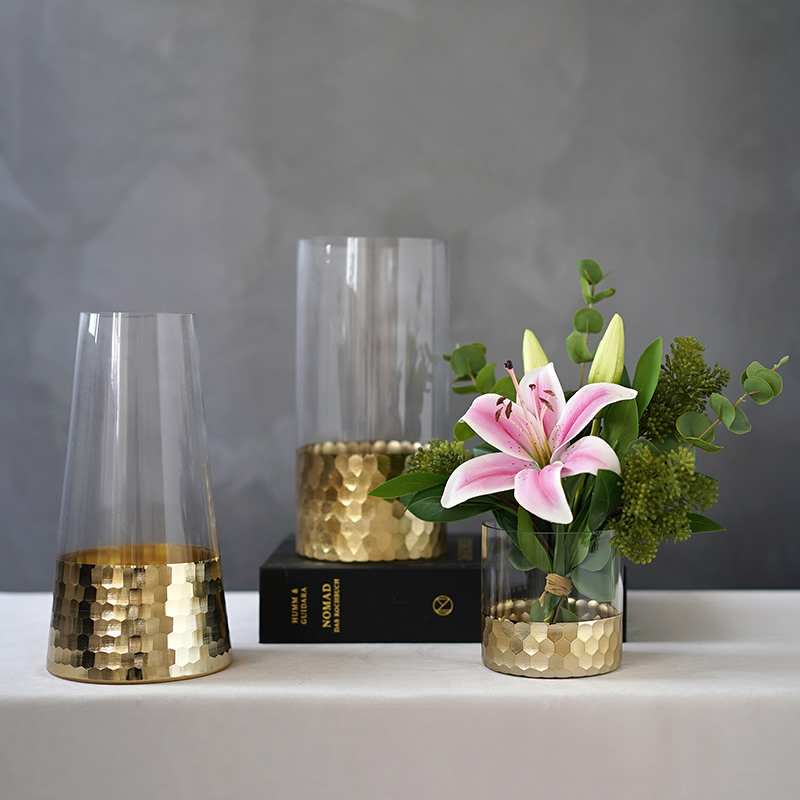 Gardenia Beauty Home Light Lavish Gold Honeycomb Glass Vase Nordic Transparent Dry Flowers Emulated Flower Pendulum with flower arrangement