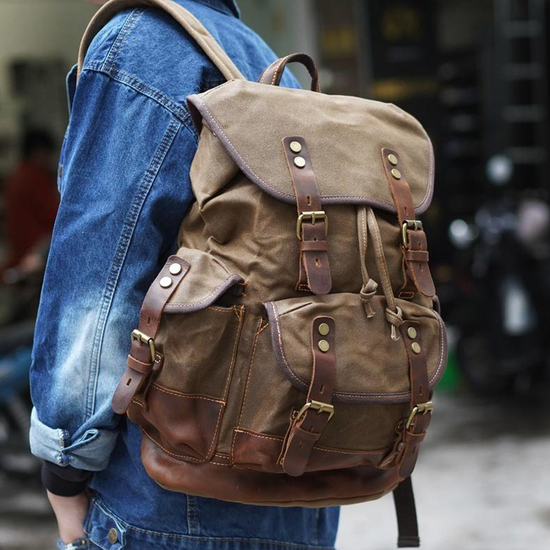 European and American backpack multifunctional replica pepper salt military style retro canvas computer bag large capacity Men's backpack