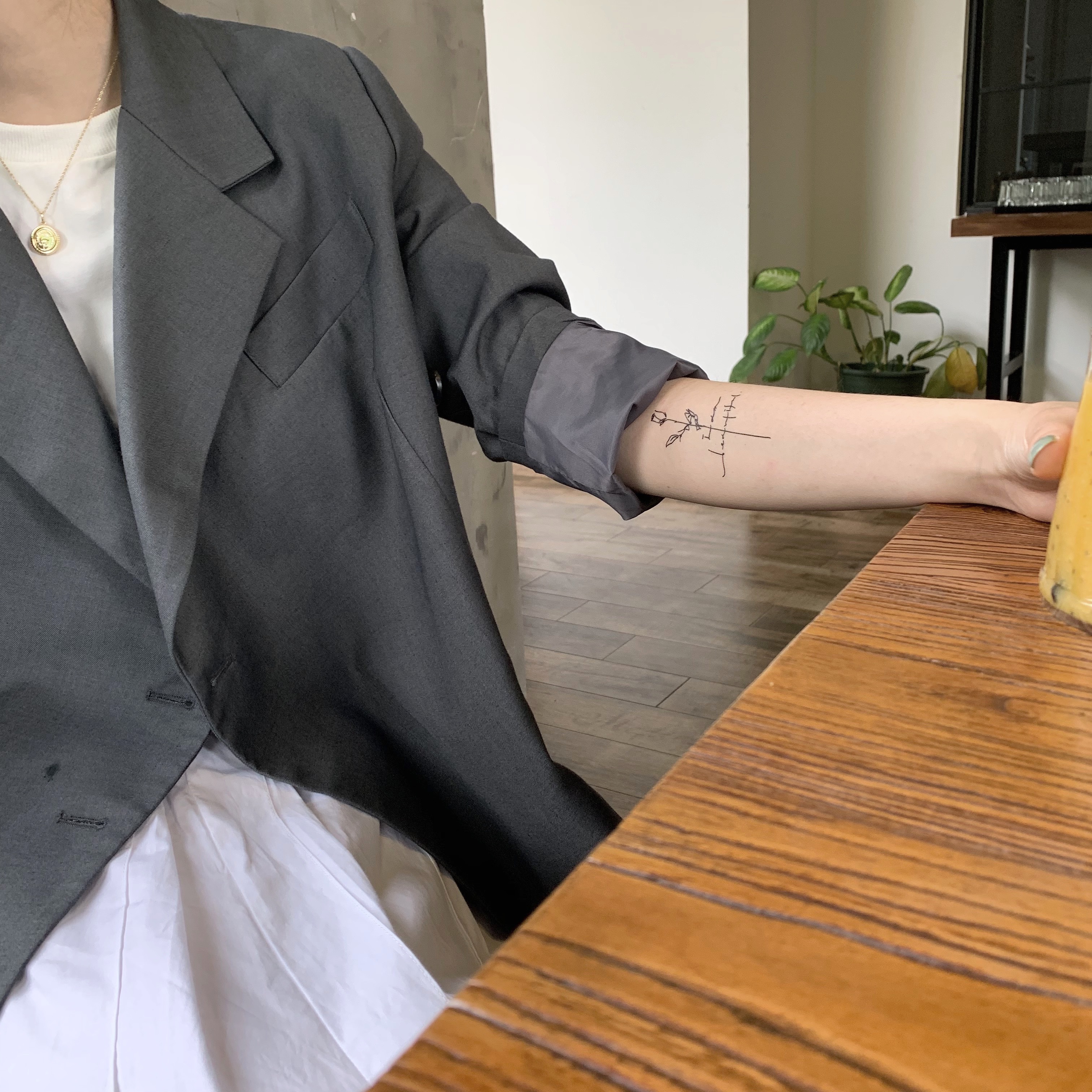 AnOther Tattoo ins style line art rose beautiful waterproof long-lasting tattoo stickers buy one get one free
