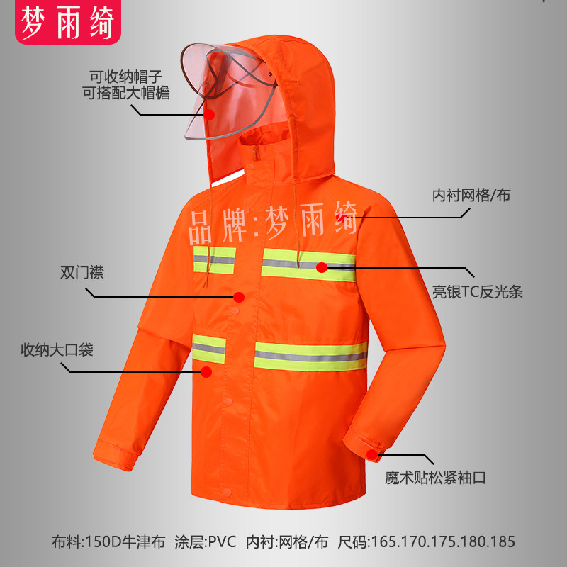 Rainsail reflective raincoat Road sanitation workers fire split adult waterproof orange group takeaway raincoat suit