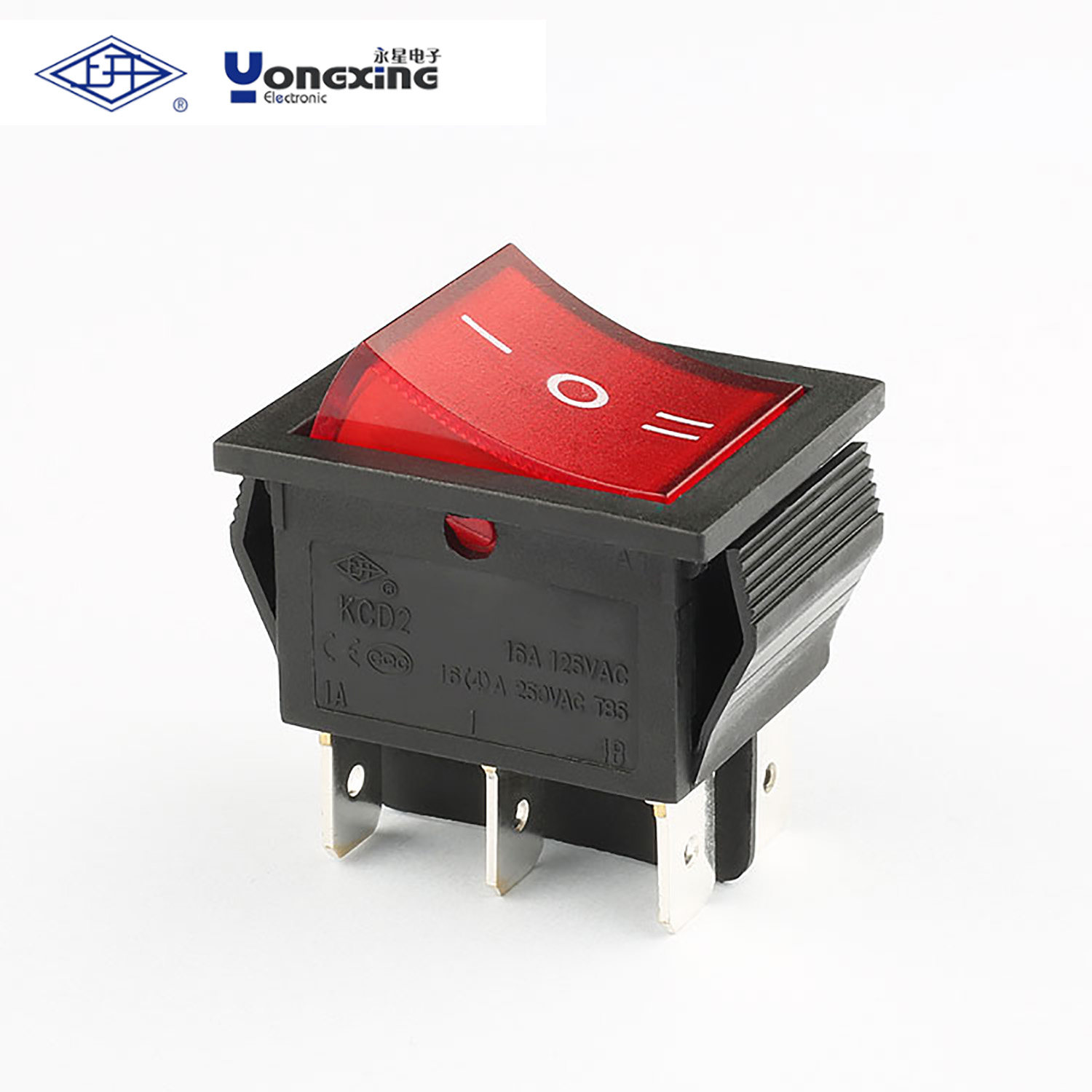 Open Shanghai Yongxing rocker switch KCD2-21N-CA1A 16A 4 feet 2 gear red with light 220V