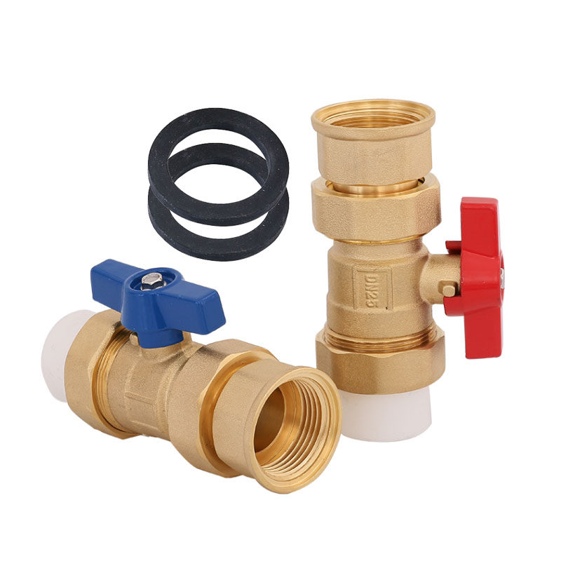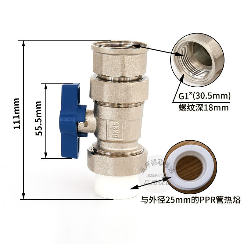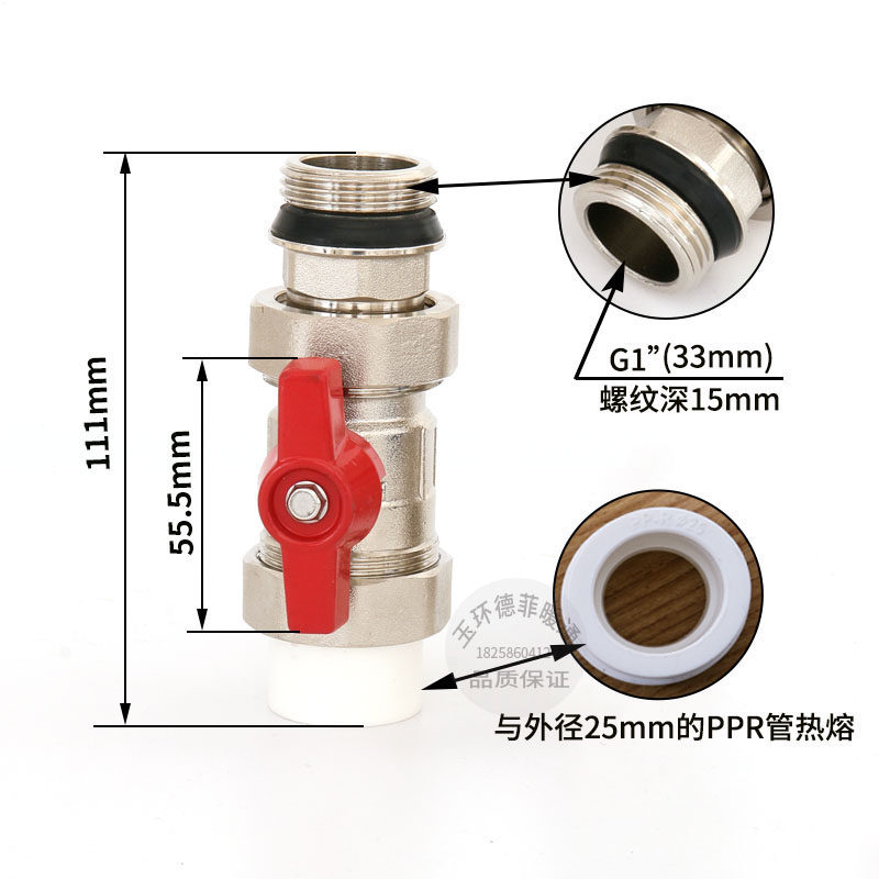Floor heating water separator valve PPR ball valve 25 PPR32 1 inch inner and outer wire brass natural color electroplated ball valve