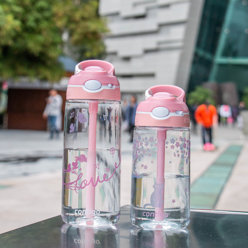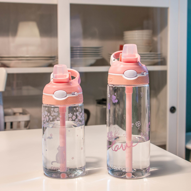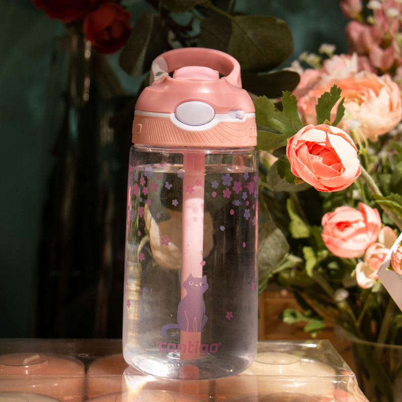 American Contigo Condick children's leak-proof lock plastic color-changing straw cup full of cherry blossoms and cats