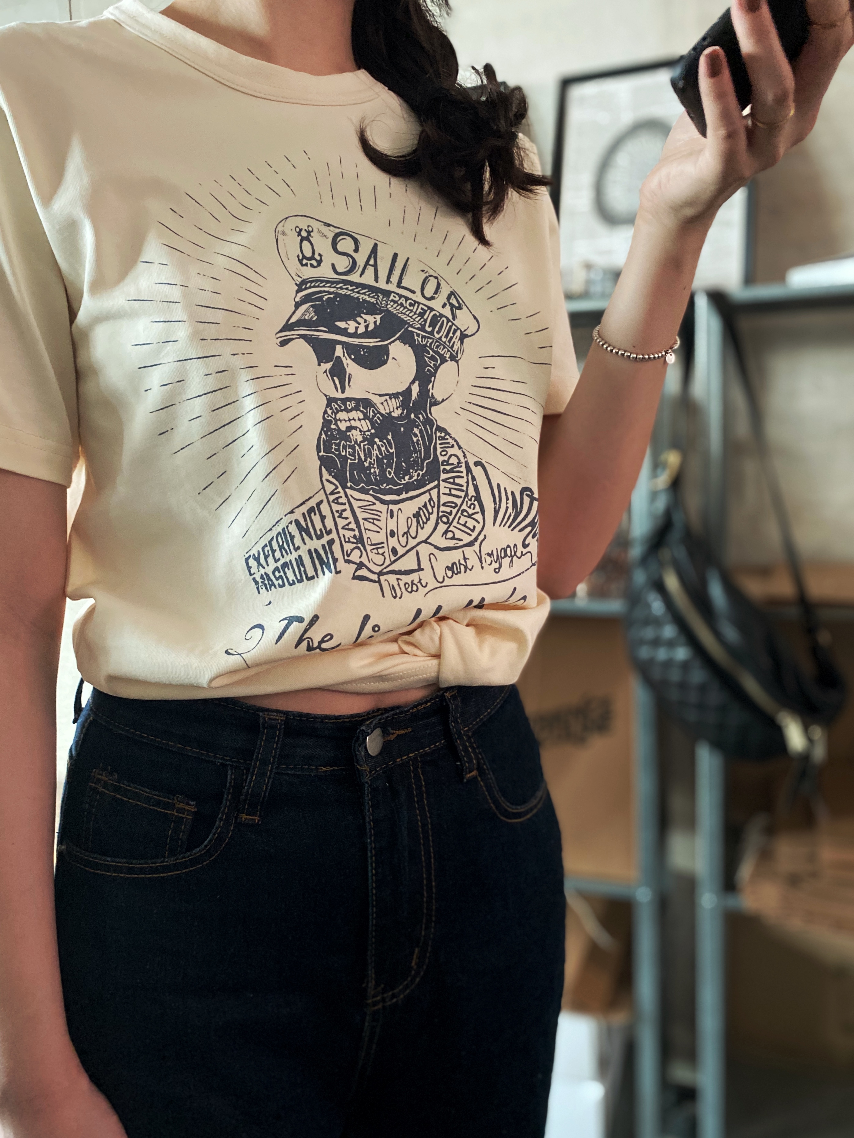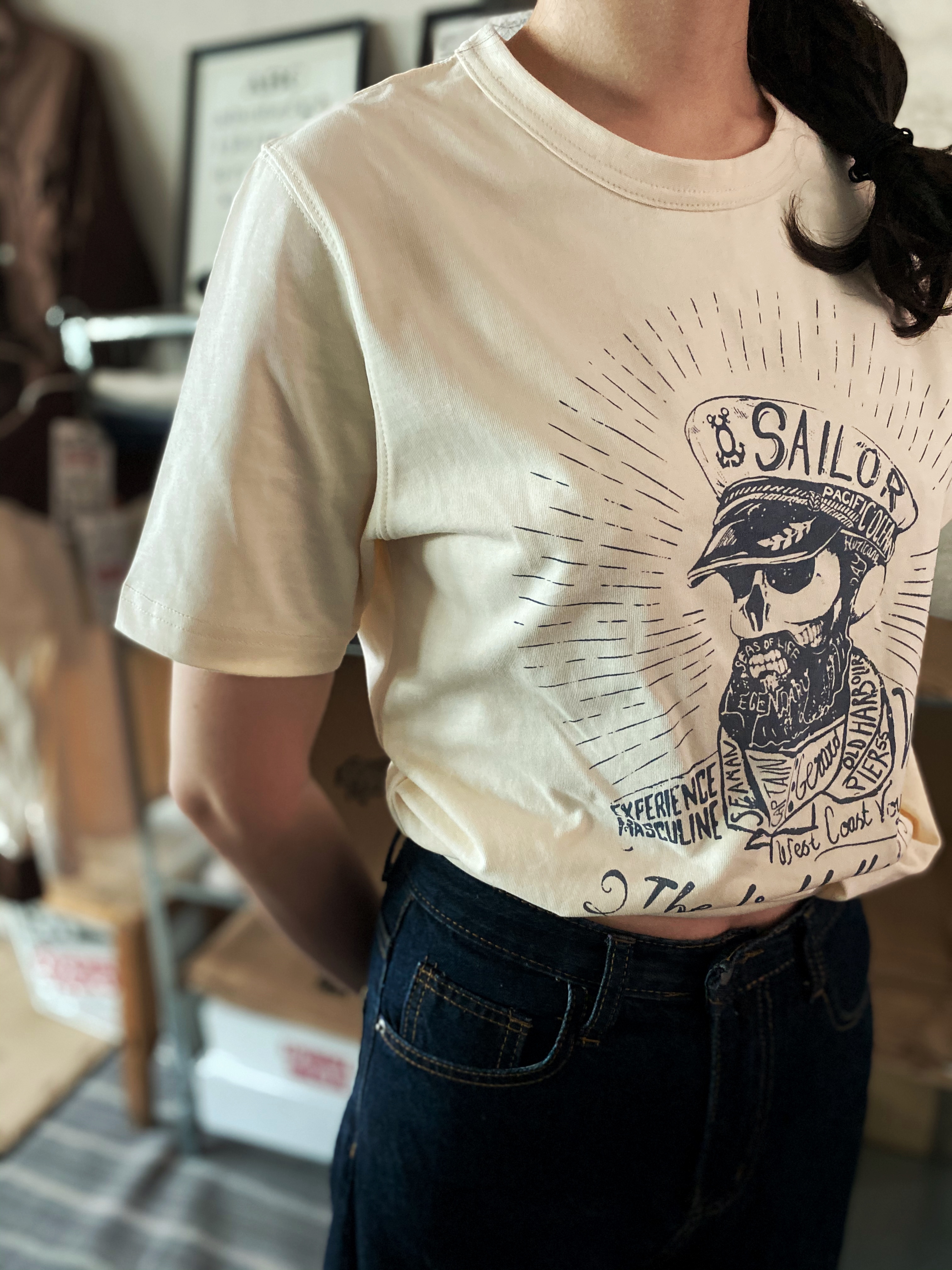 Chai Mi American retro printed cotton short-sleeved heavy slim round neck Xinjiang cotton half-sleeved T-shirt khaki summer