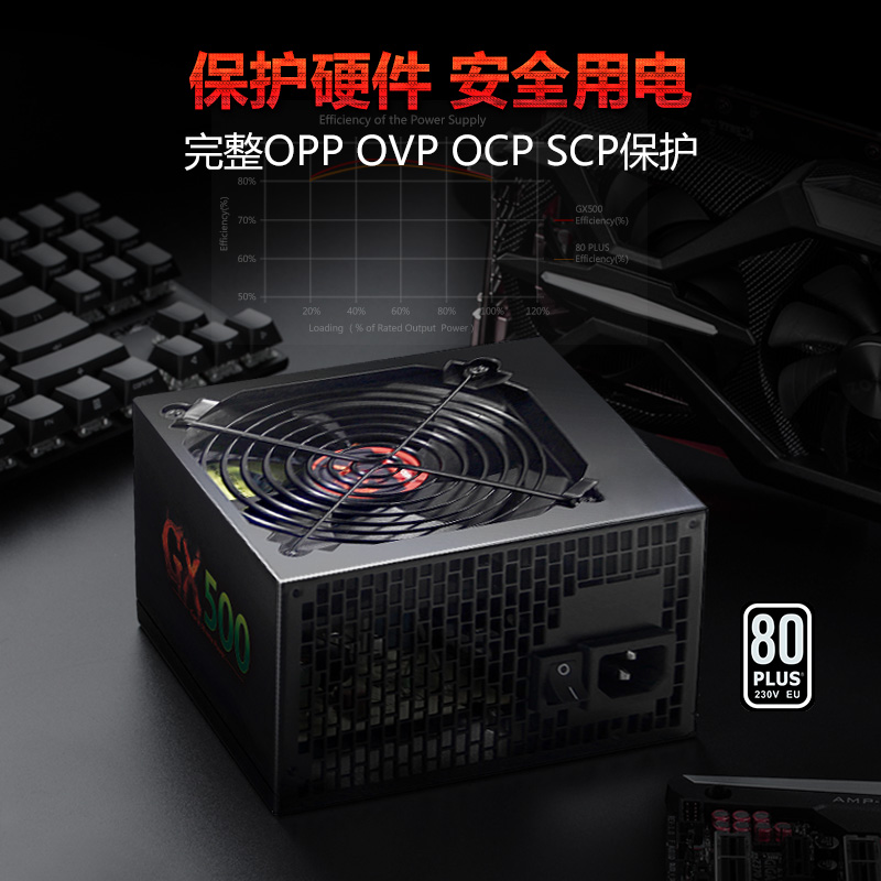 Hangjia power supply GX500 computer power desktop rated 500W game console ATX white bronze back line