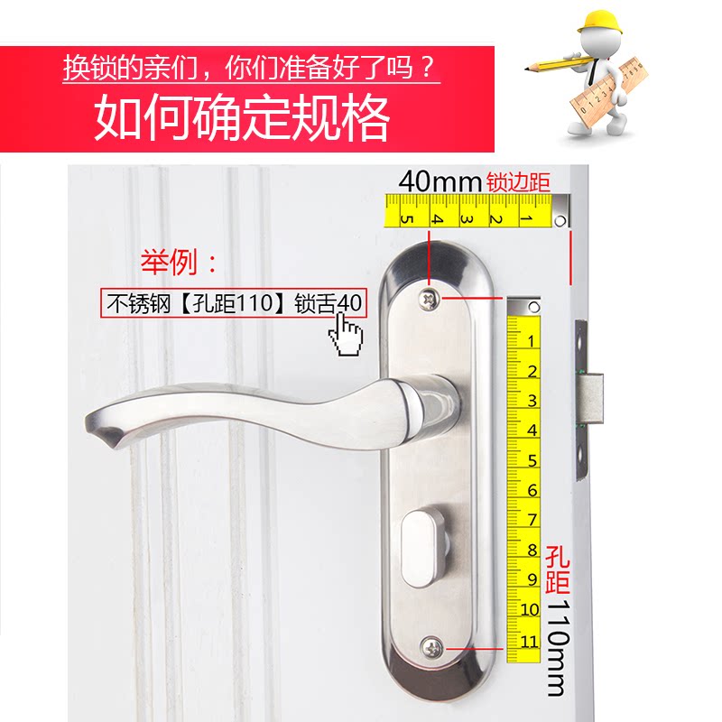 304 stainless steel bathroom door lock keyless bathroom lock single tongue bathroom toilet universal BK handle lock