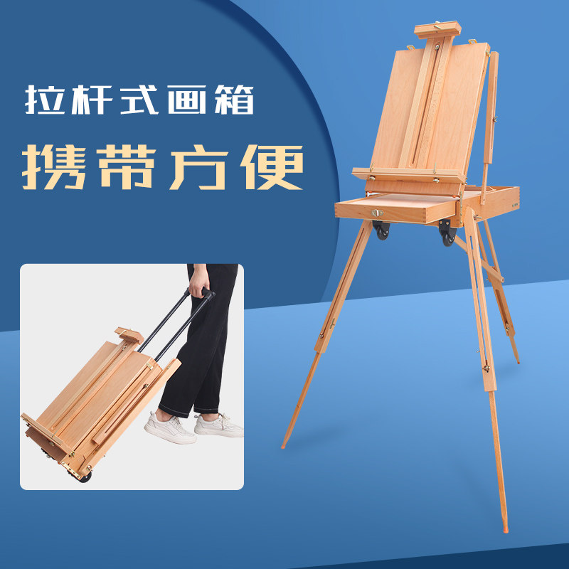 Wooden oil painting box portable portable outdoor sketbox aluminum alloy drawbar men's painting box oil painting shelf fine art special