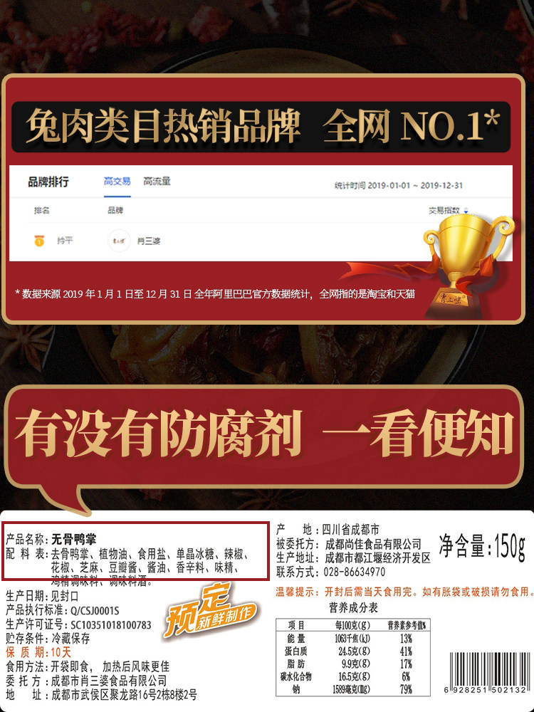 Xiao San Po Boneless duck paw 150g spicy boneless duck paw snack snack