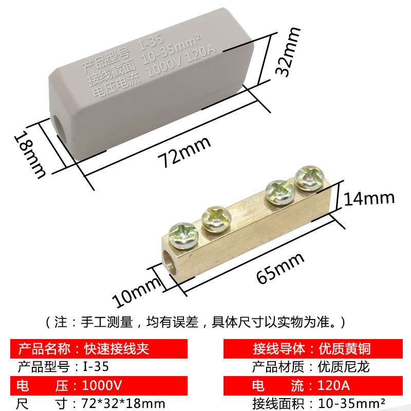 Wire connector fast terminal 10-35 square copper-aluminum transition terminal clip high-power butt joint