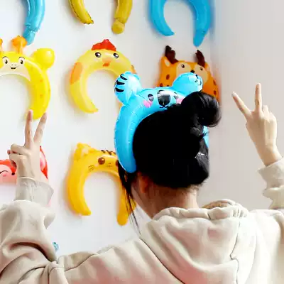 June 1 Children's Day cartoon animal aluminum film ground push hairband balloon headdress Birthday party decoration photo props