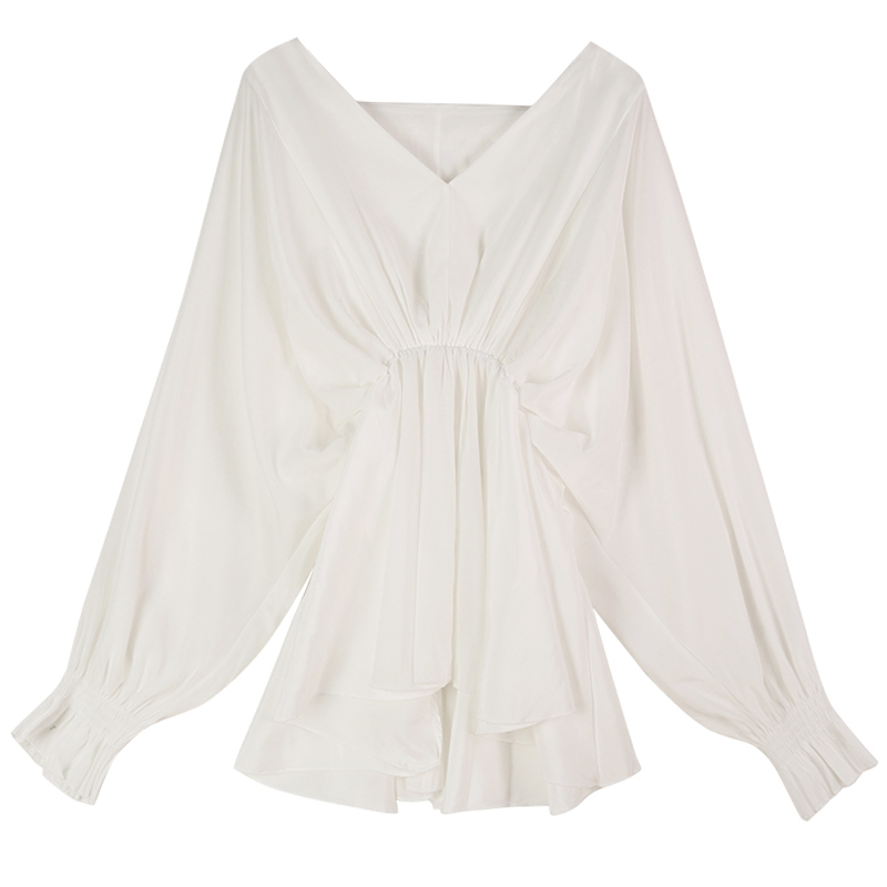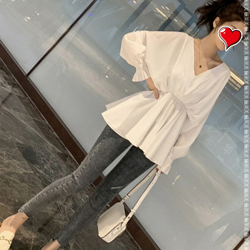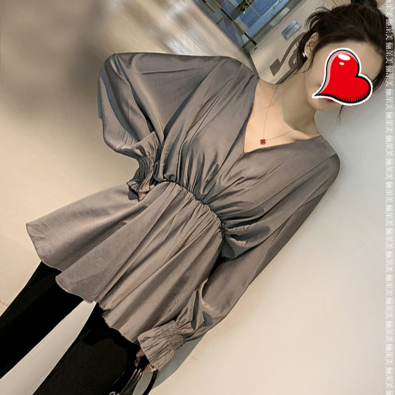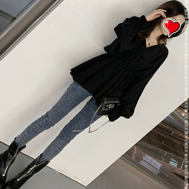 Maternity wear autumn top 2022 new V-neck lantern sleeve mid-length version doll loose and thin maternity dress