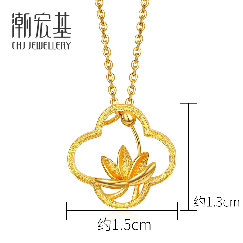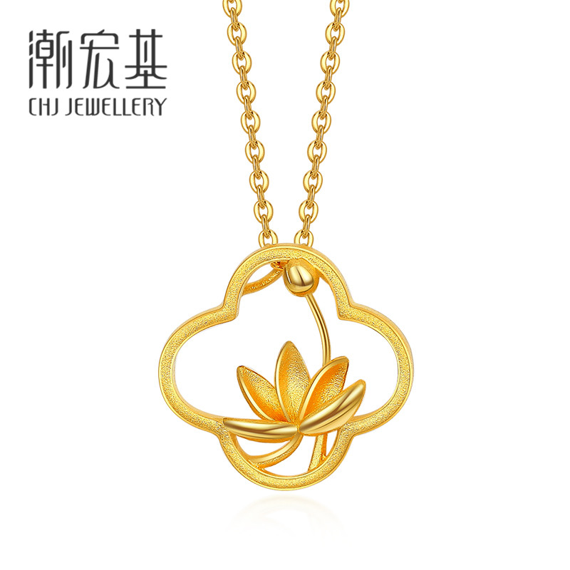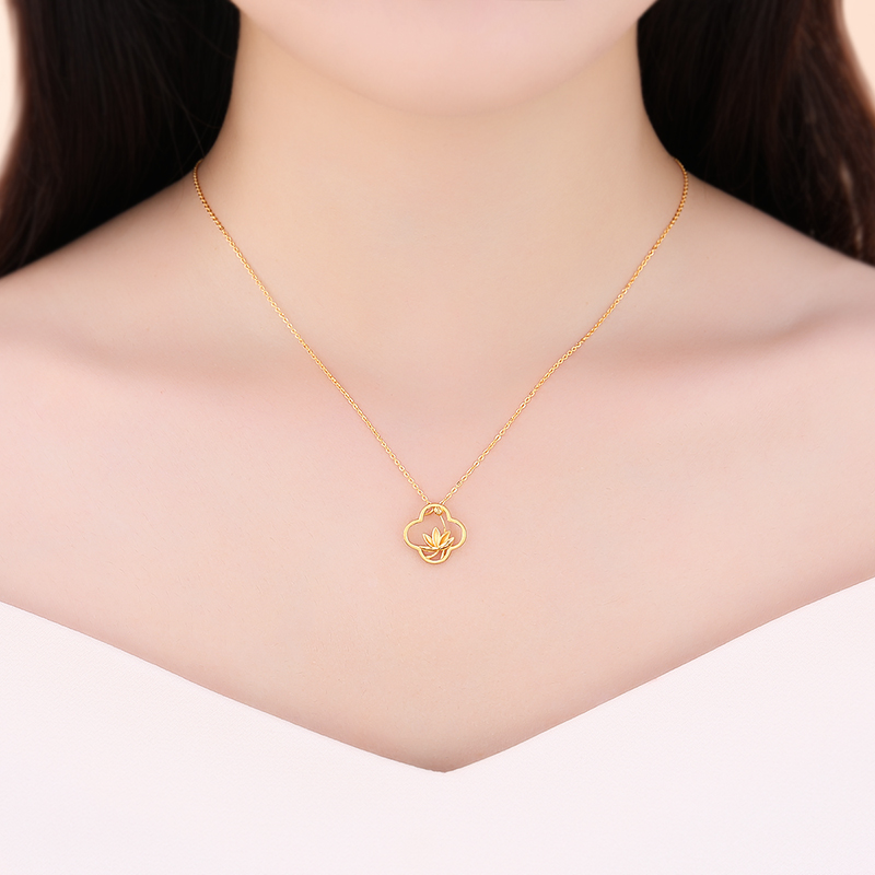 Chao Acer Flower Rhyme--Qinghe Pure Gold Pendant Gold Set Chain Necklace Pendant Necklace Gift Female Valuation