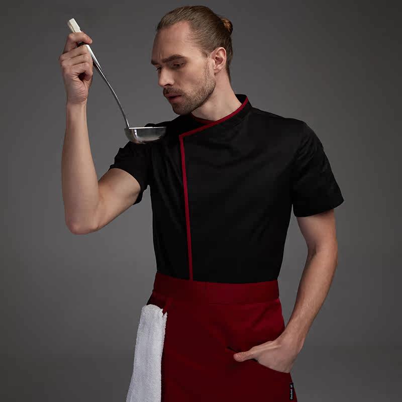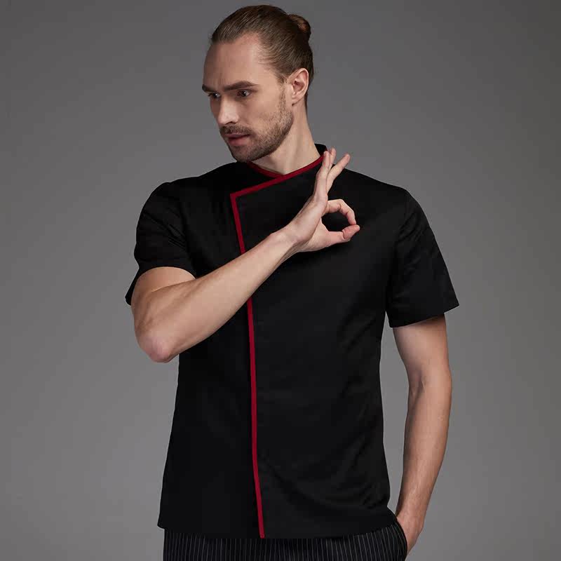 Hotel chef clothing Summer thin custom embroidery Western restaurant kitchen men's short-sleeved breathable mesh black kitchen clothing