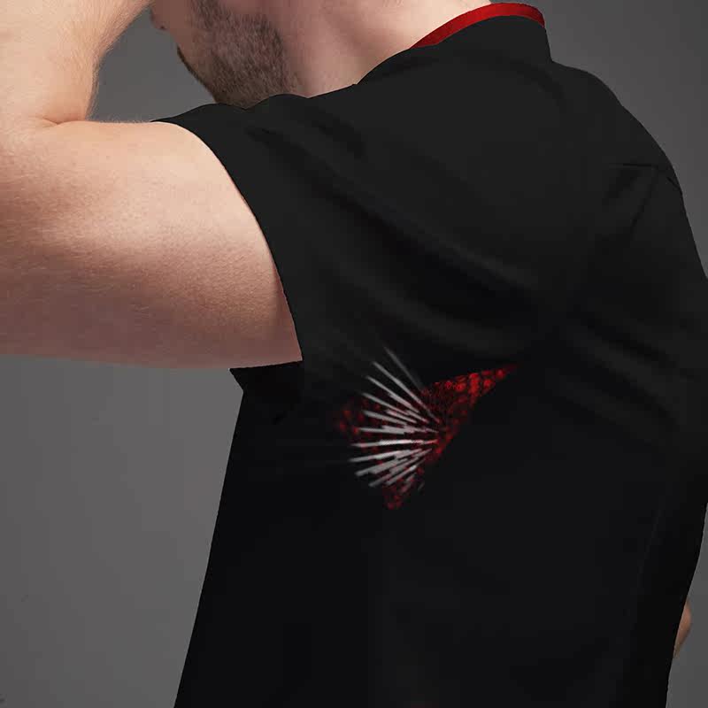 Black with wine red short sleeves
