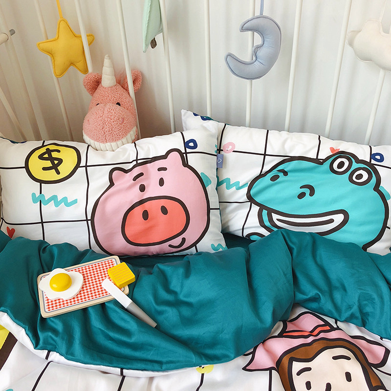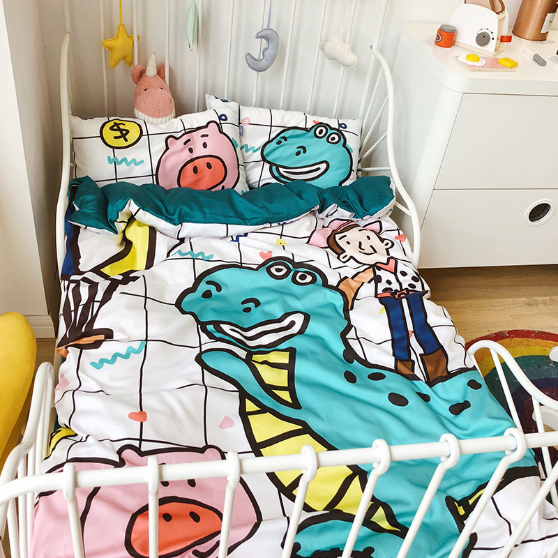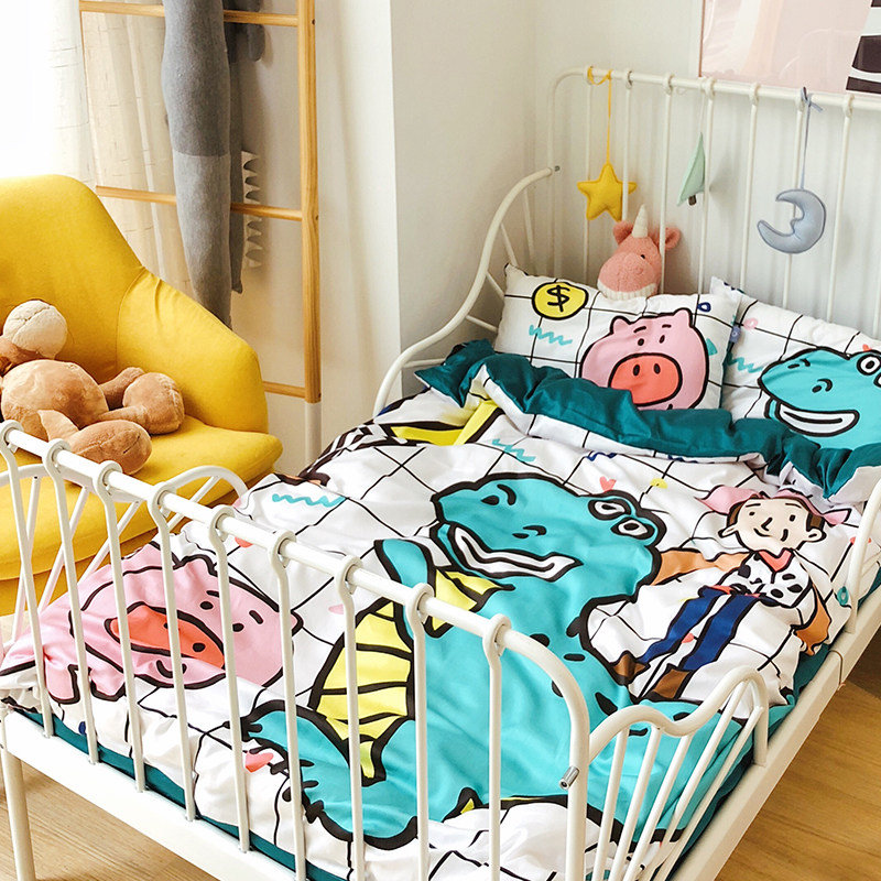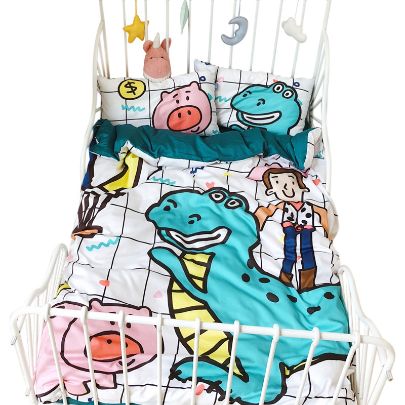 Cotton 60 sticks of tribute satin four seasons cartoon soft cute baby crib kit kindergarten dormitory four-piece set of bedding
