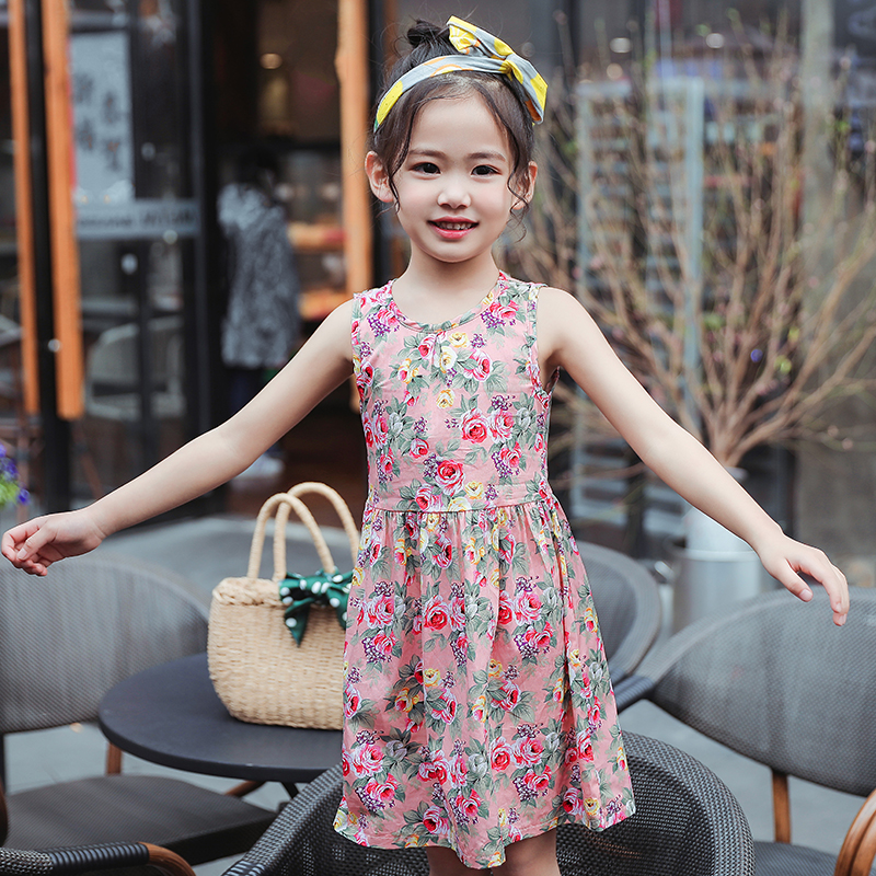 Baby princess dress girl summer cotton silk dress artificial cotton thin little girl beach hanging band dress Korean version crummy dress