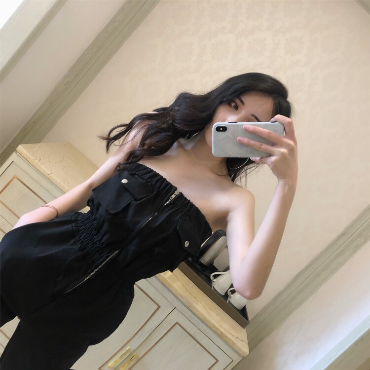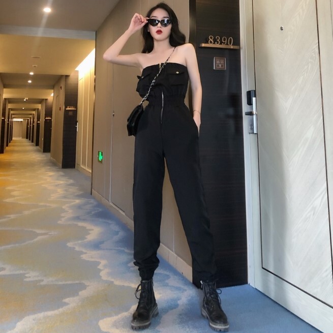 Net red tooling jumpsuit female autumn and winter thin 2022 pure desire sexy pure desire bundle feet sexy black radish pants