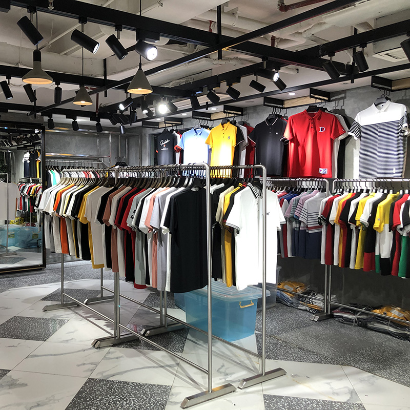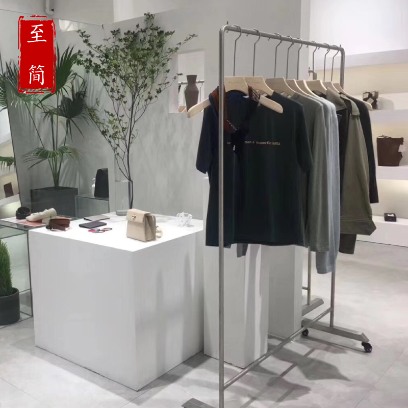 Clothing store display rack Women's store floor-to-ceiling hanger Stainless steel display island rack shelf Simple special silver