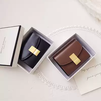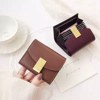 Leather card bag female small simple personality 2021 Europe and the United States new retro large-capacity short small card bag Korean version of the tide