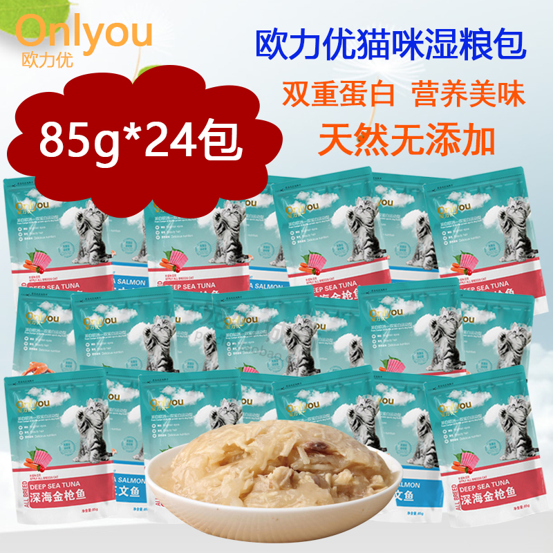 Ouliyou cat Miao wet food fresh pack snacks Salmon tuna fresh seal soft canned 85g*24 packs mixed