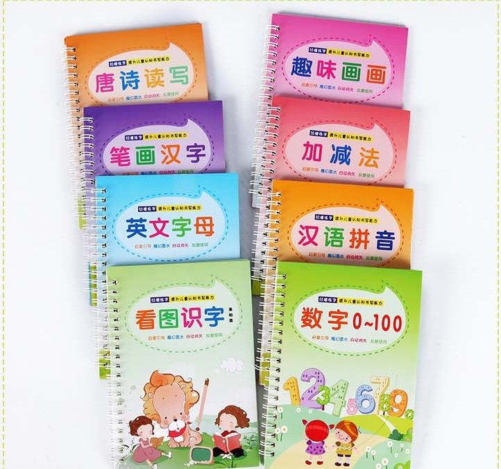 Primary school ancient poems 75 first 2 volumes (with refill 1 set of children's practice letter 6 ben (1 pen 6 core 1 grip) full set of 8 books (giver 1 pen 10 core 1 grip) Children's rehearsary 8 Bench 8 Refill Super Cute