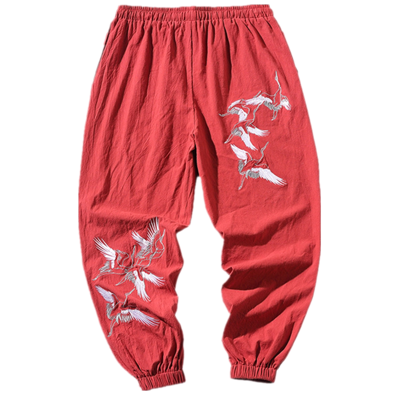 Chinese style ancient style casual pants Tie-foot Harun pants Summer Tang dress men's pants Vintage embroidered Hanfu closed trousers