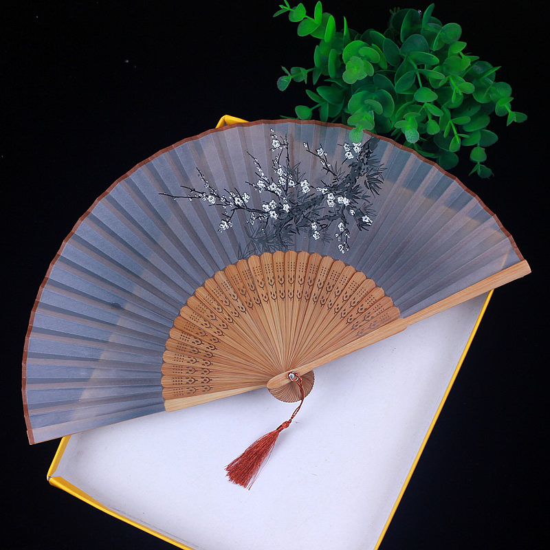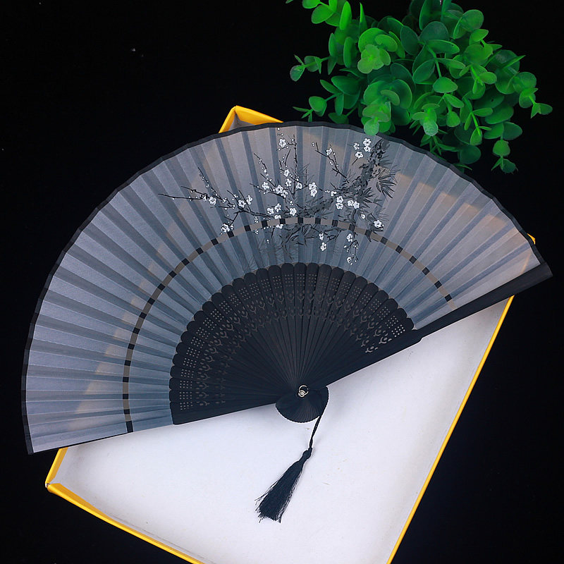 Chinese fan folding fan ancient style women's summer portable folding ancient Han clothing ancient costume classical tassel small bamboo fan