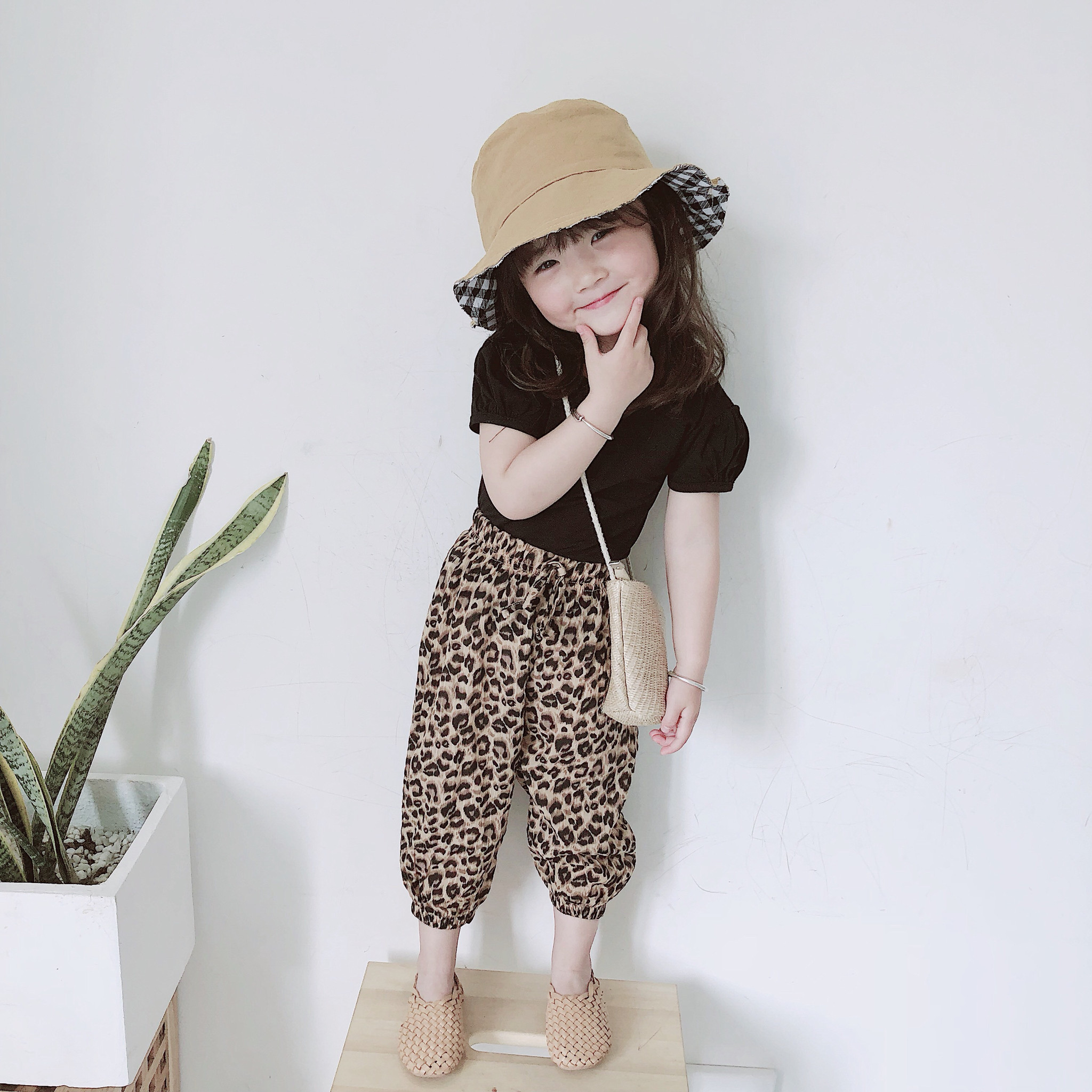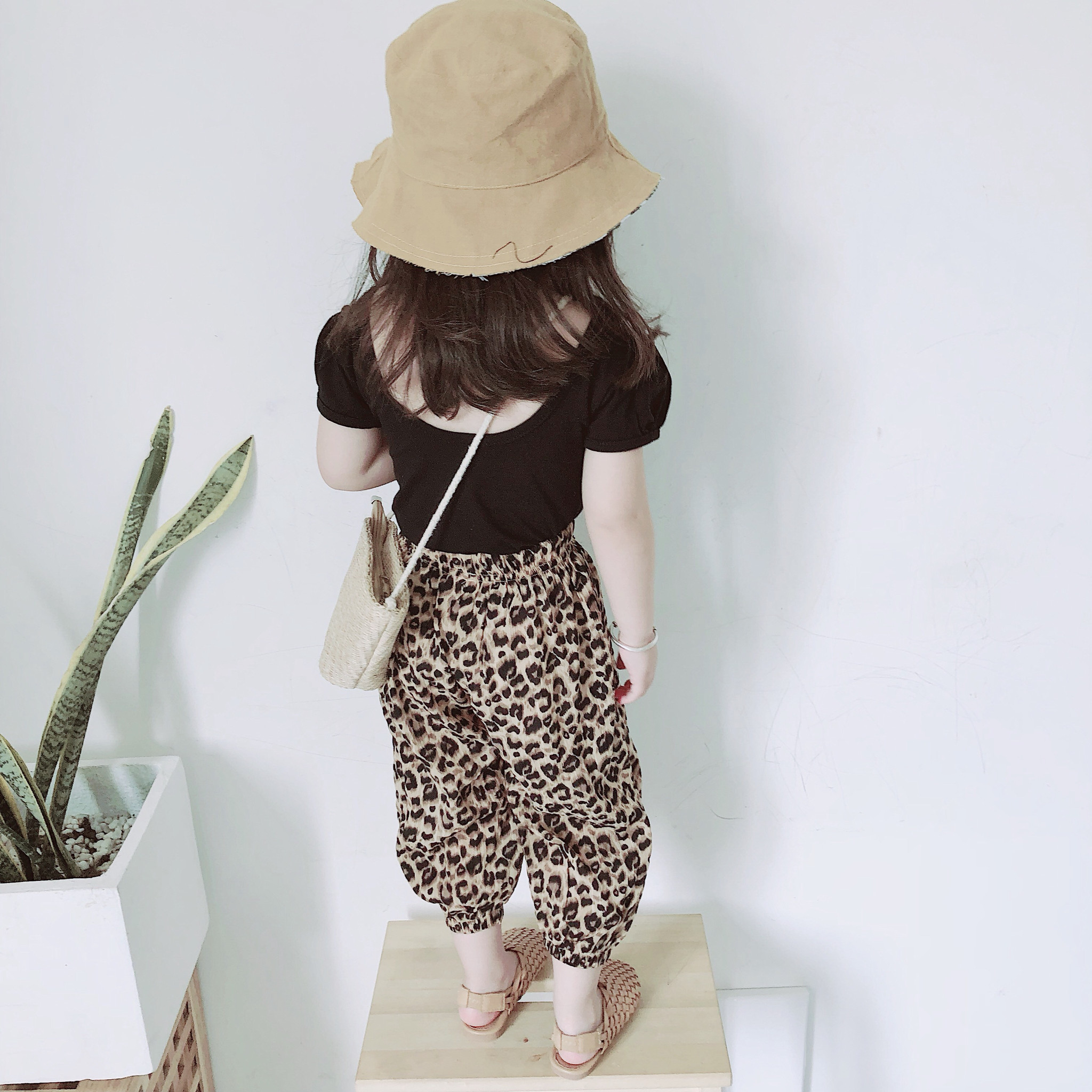 Bean bag Jun 2021 summer Korean girl baby Black small sexy halter slim short-sleeved T-shirt tide parent-child section