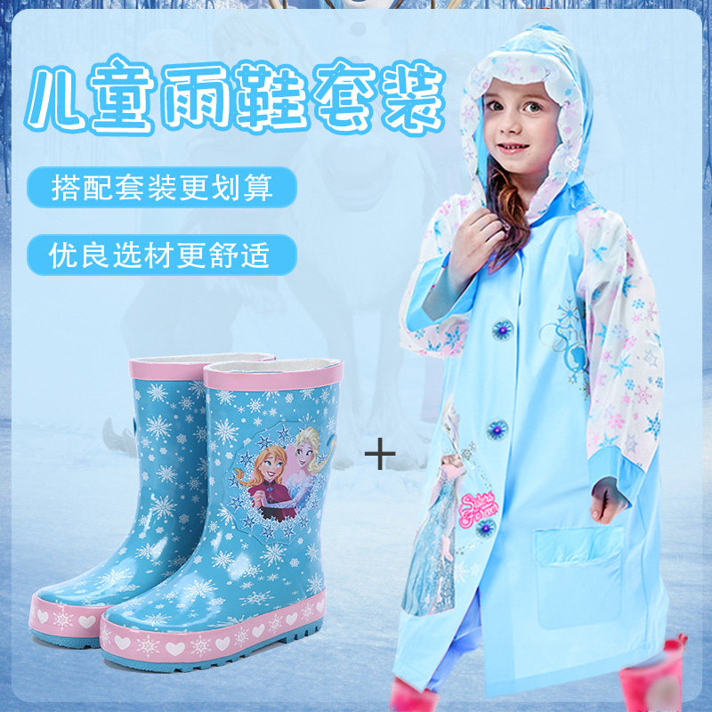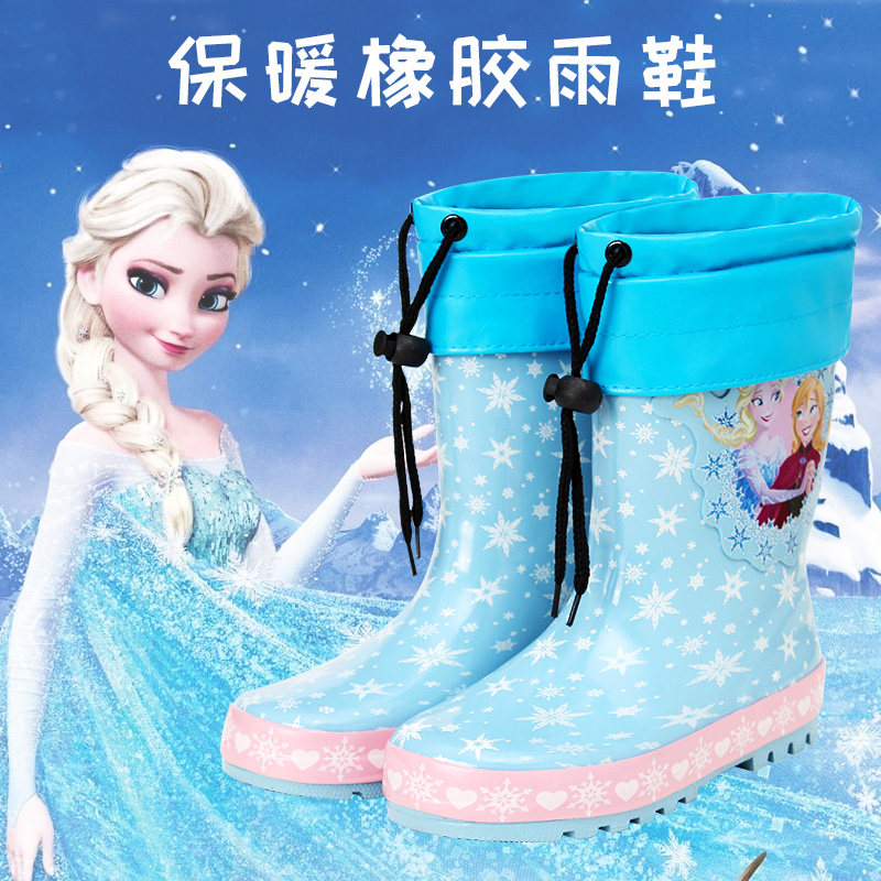 Children's rain boots boys and girls cute cartoon princess rain boots big children's rubber shoes primary school students plus velvet warm waterproof shoes