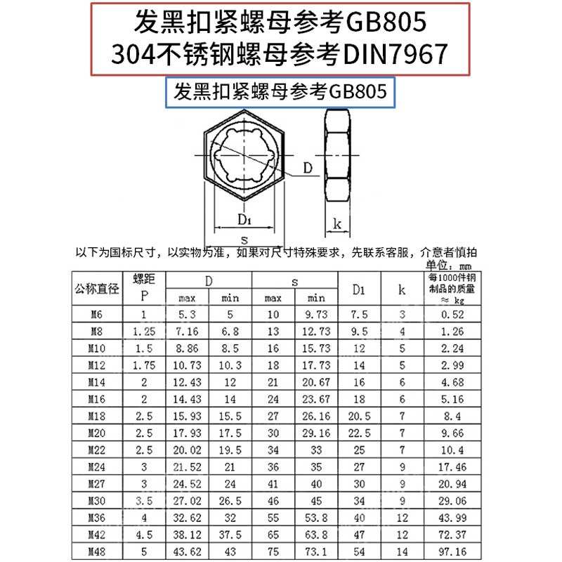 304 stainless steel fastening nut fastening nut anti-loosening reverse nut self-locking locking nut GB805 black 40% off