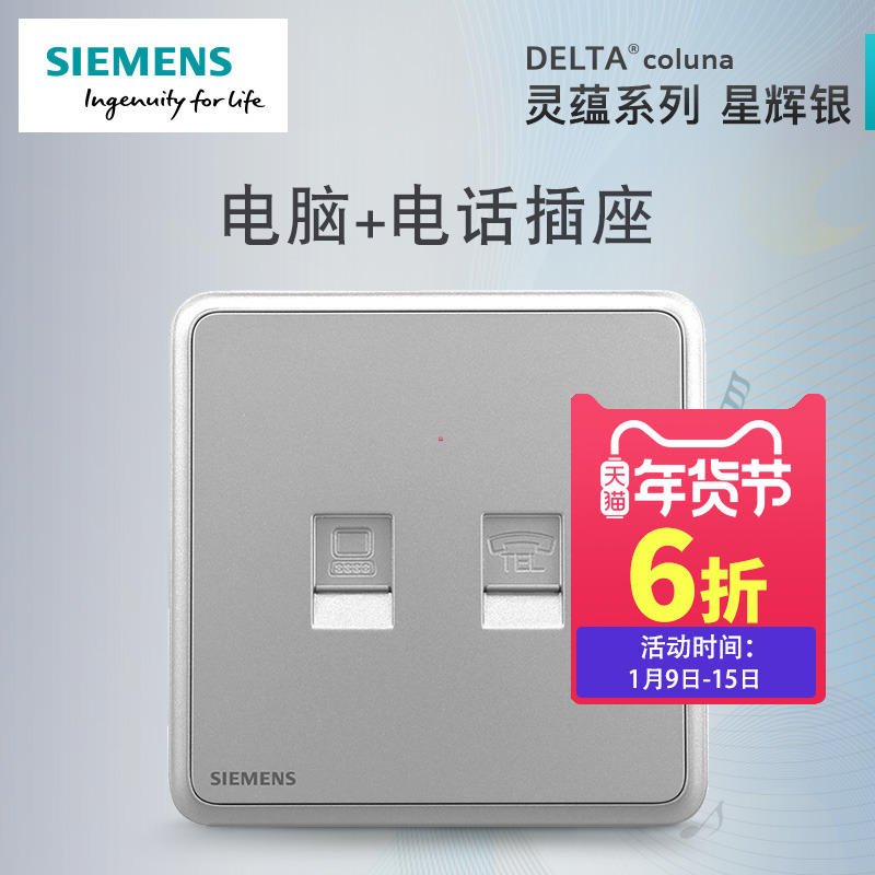 Siemens switch socket panel Lingyun Xinghui silver home 86 two-digit telephone computer network cable socket