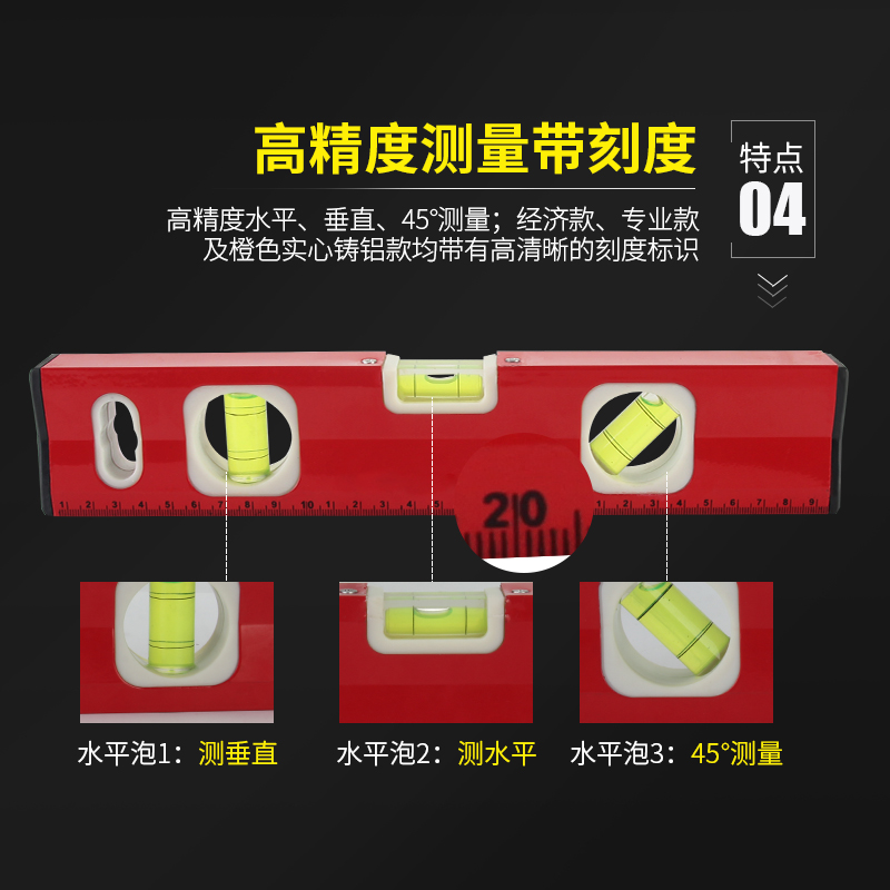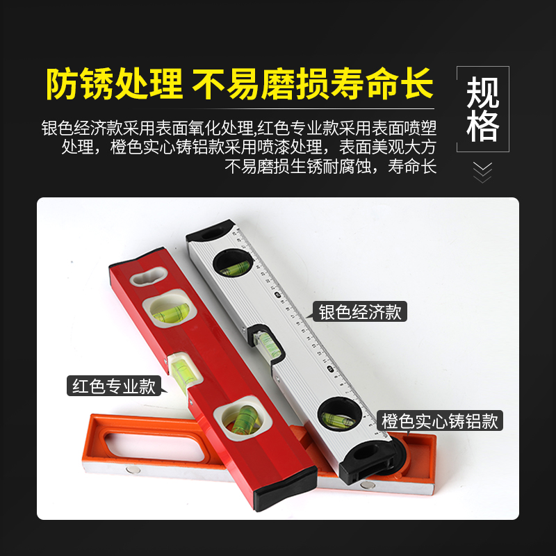 Horizontal ruler High precision aluminum alloy solid flat water ruler Multi-function cast aluminum magnetic decoration ruler Blister balance ruler