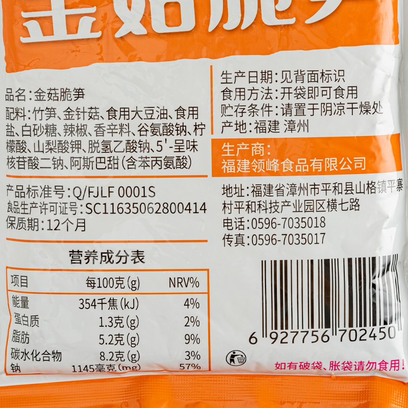 Bamboo shoots Flammulina edible soybean oil Edible salt White sugar Spices Food additives