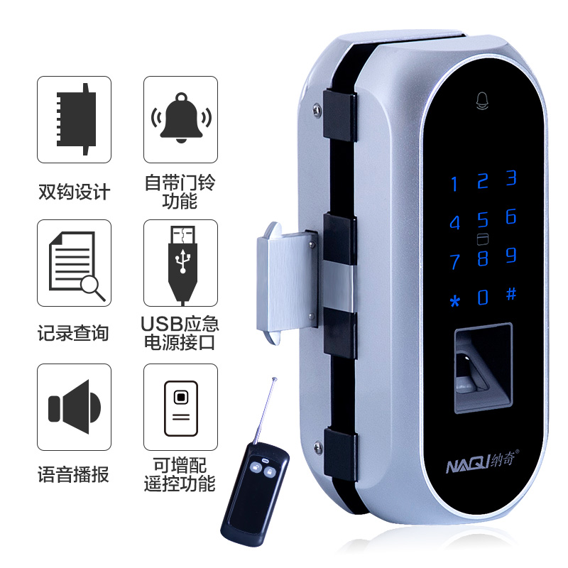 Naqi office glass door fingerprint lock Drilling-free password lock Single door electronic access control system Double door access control card reader