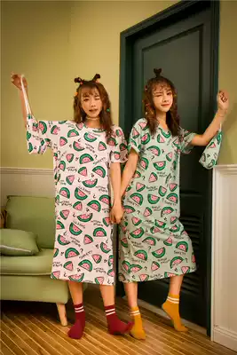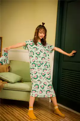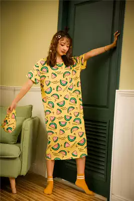 Pure cotton short-sleeved night dress printed cartoon casual cute girl student long dress 2021 pajamas women spring and summer new