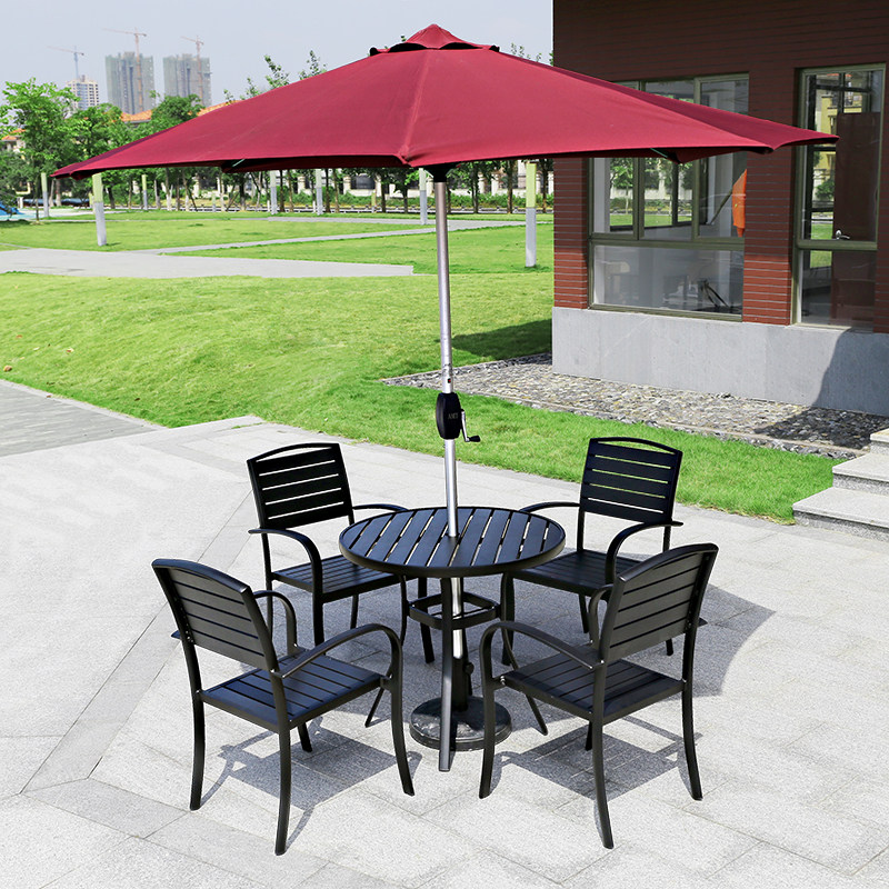 Outdoor table and chairs patio garden outdoor waterproof sun protection plastic wood table and chairs tea table combined open-air balcony with umbrella table and chairs