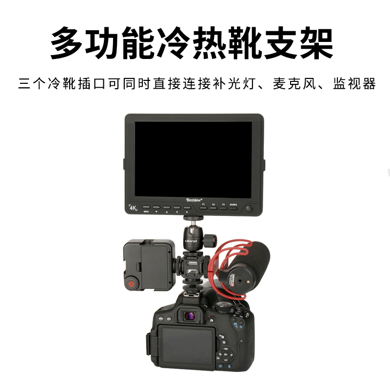Three-head hot boots for three hot boots VL49 Tonic Light Three Heads Hot Boots Q1 Microphone Three Heads Hot boots VL49 Tonic Light light Q1 microphone Three-head hot boot bracket Three-head hot boot Support