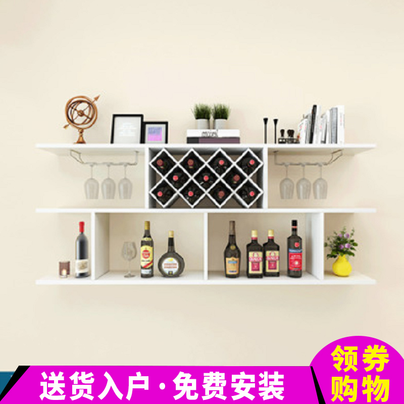 Modern simple wall wine cabinet solid wood grid rack dining room hanging cabinet hanging Wine Bottle Rack bar stand kitchen wall cabinet