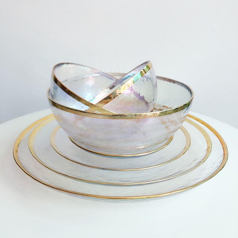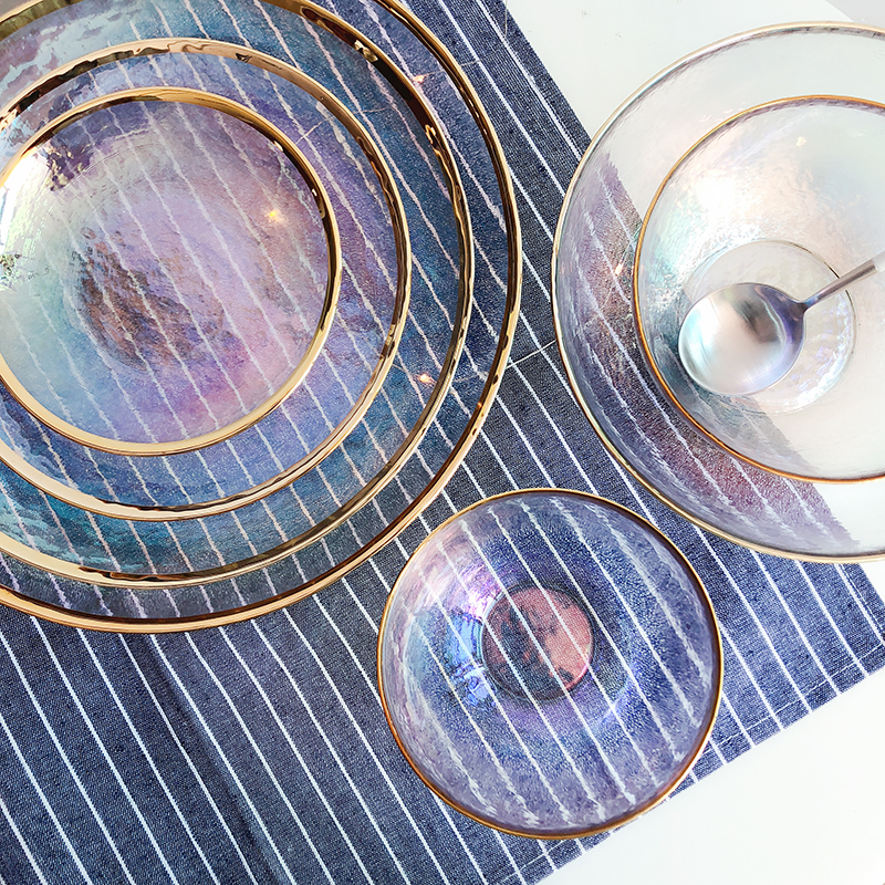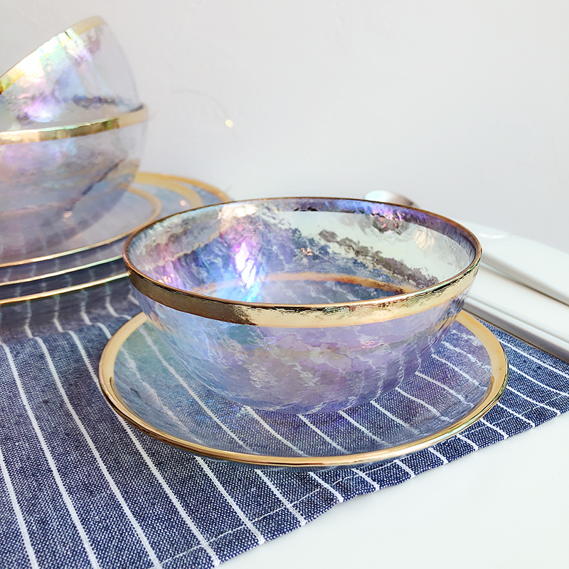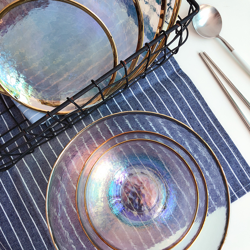 ins net red Nordic creative dazzling glass bowls hammered home plate salad bowl rice bowl west dinner plate