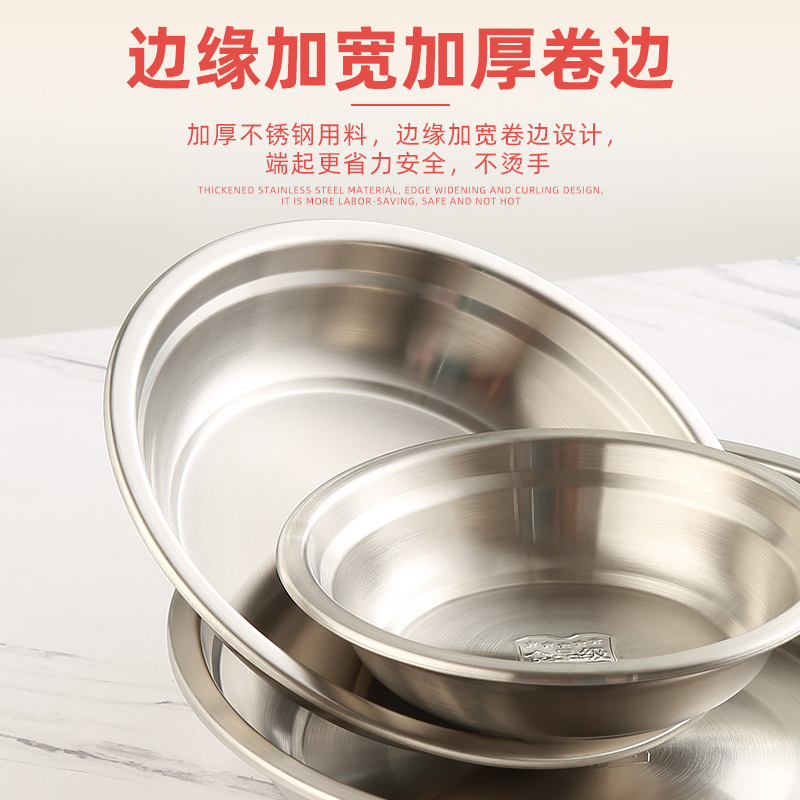 Stainless steel plate round plate plate household creative soup plate deep plate small flat plate large plate large household plate
