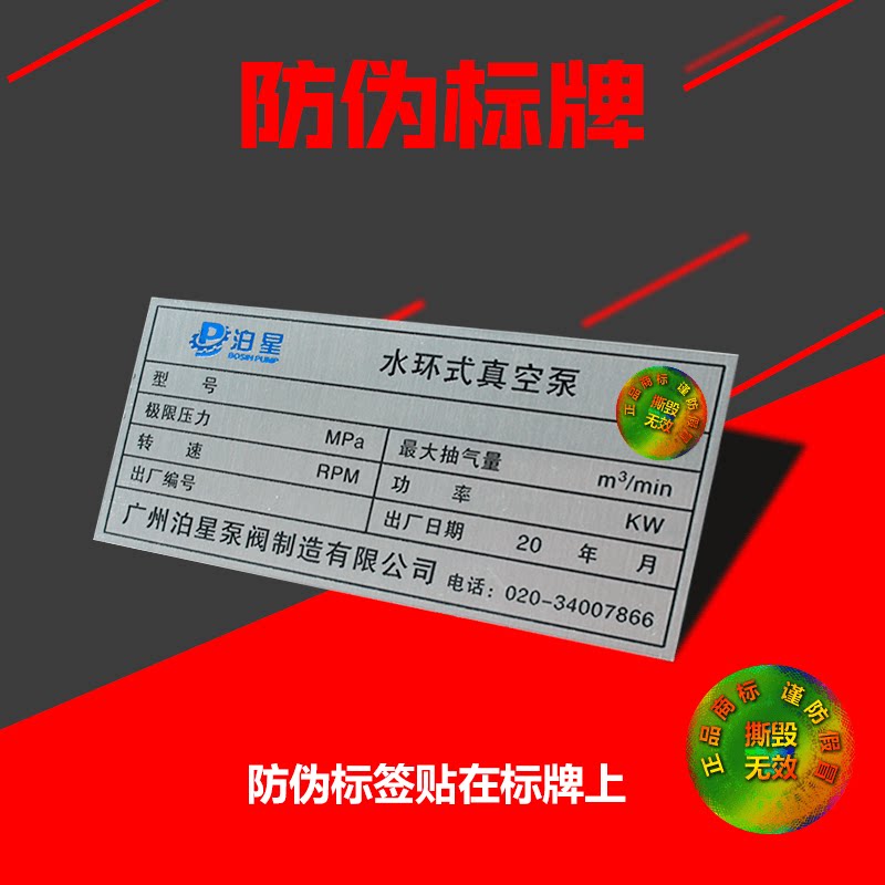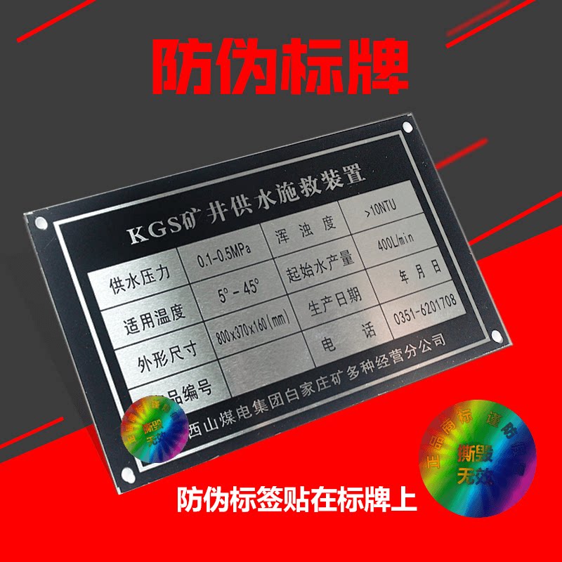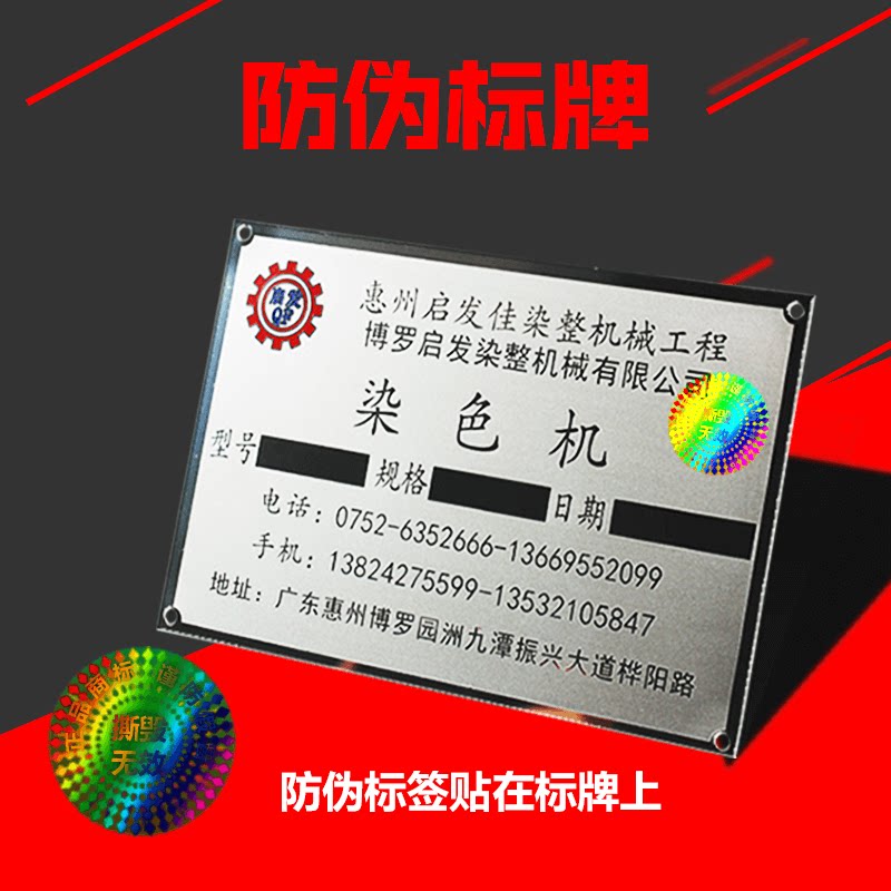 Laser anti-counterfeiting nameplate nameplate custom aluminum stainless steel copper iron metal pvc plastic panel trademark Machinery machinery engineering product identification label Rafi label Nameplate custom custom