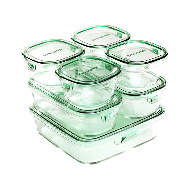 Japan's Yiwanjia iwaki heat-resistant glass preservation box lunch box rectangular lunch box microwave oven bowl 7-piece set