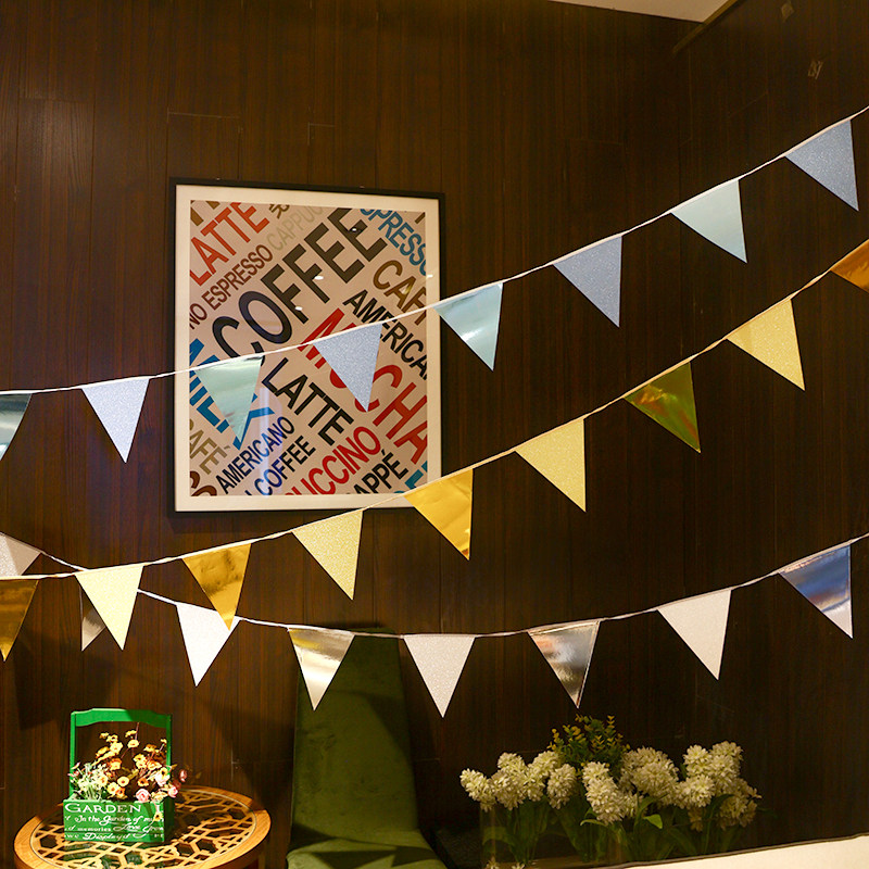 Birthday pennant party arrangement pull flag banner baby one-year-old bunting decoration background wall wedding opening pull flower