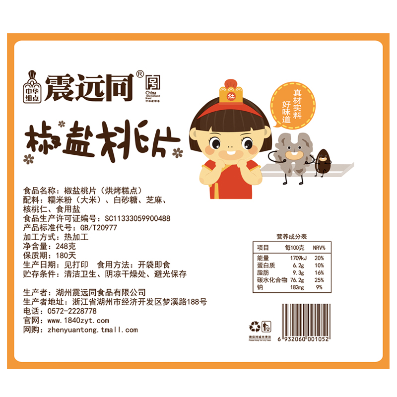 Earthquake far away with pretzels Salt Peach Slices Walnut Slice Bagged Zhejiang Lake State Terproduce Traditional Artisanal tea Snack Rice Cake Snack