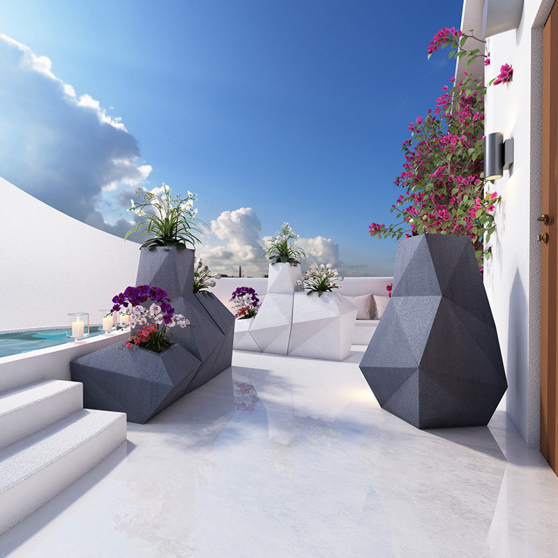 Large-sized glass steel diamond flower pot outdoor living room in Nordic large-scale glass steel pot