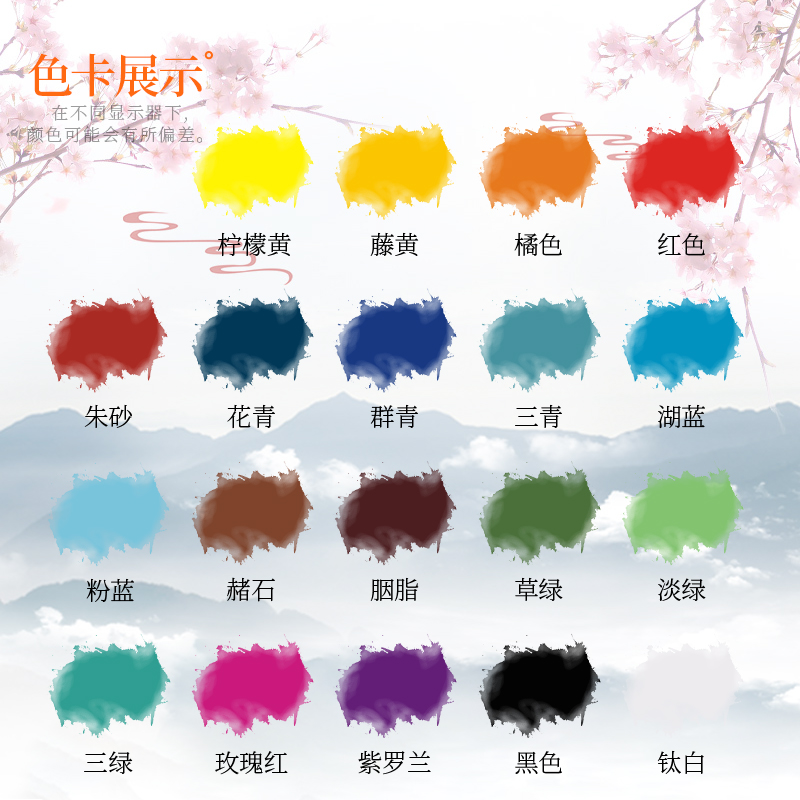 One Attic Ink Country Painting Ink Painting Ink beginner Chinese Painting ink painting Fluorescent Color Professional stroke Material Student Brush Entrance Tool kit Painted Material Color Ink Red Ink