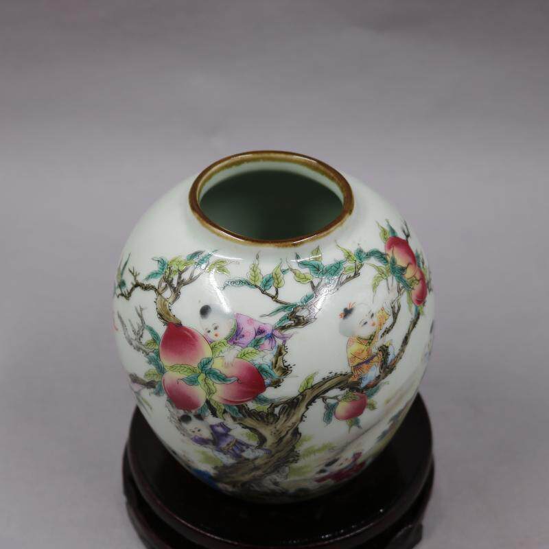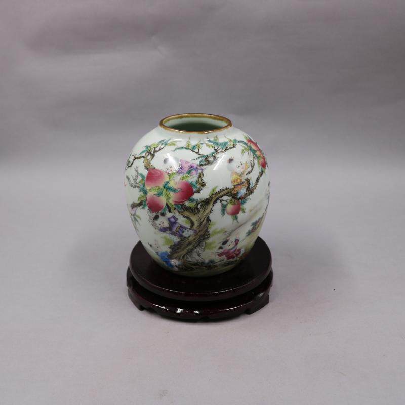 Republic of China famille rose nine sons pan peach figure porcelain jar to make old antique porcelain old factory goods home decoration antique ornaments collection