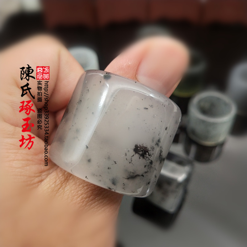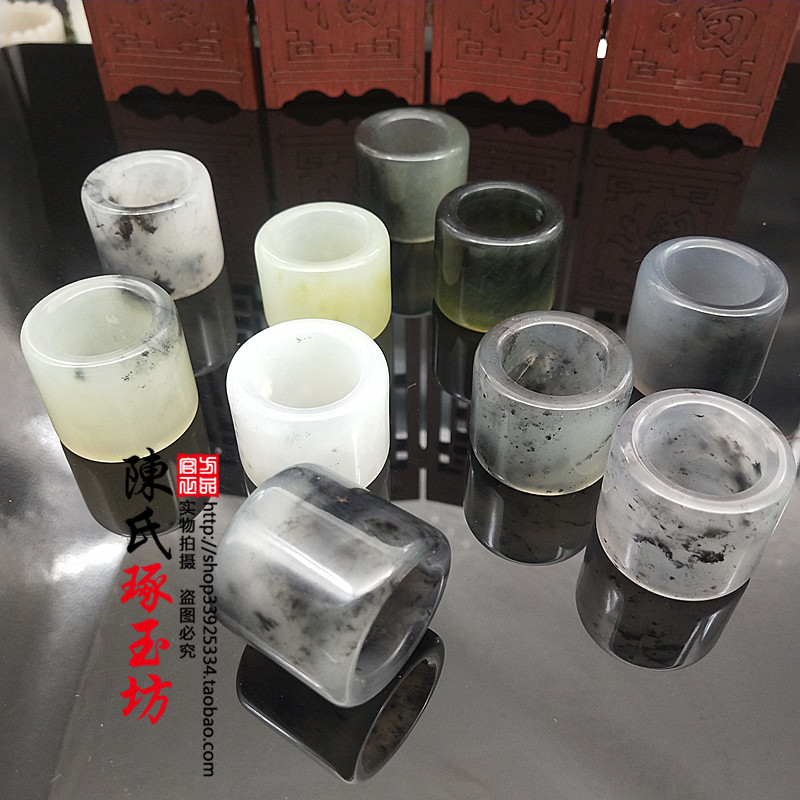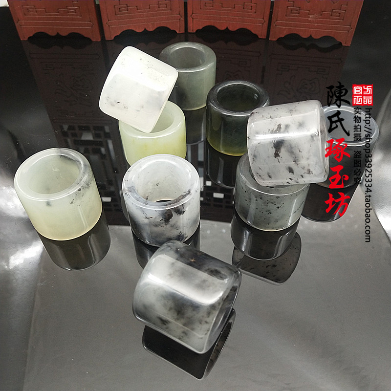 Xiuyan jade ink floating wrench men's ring jade wrench thumb jade wrench artistic ink ring