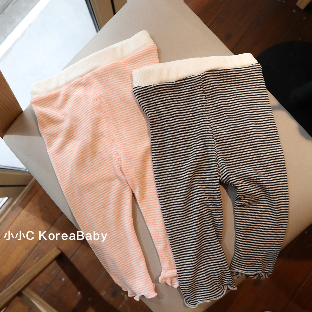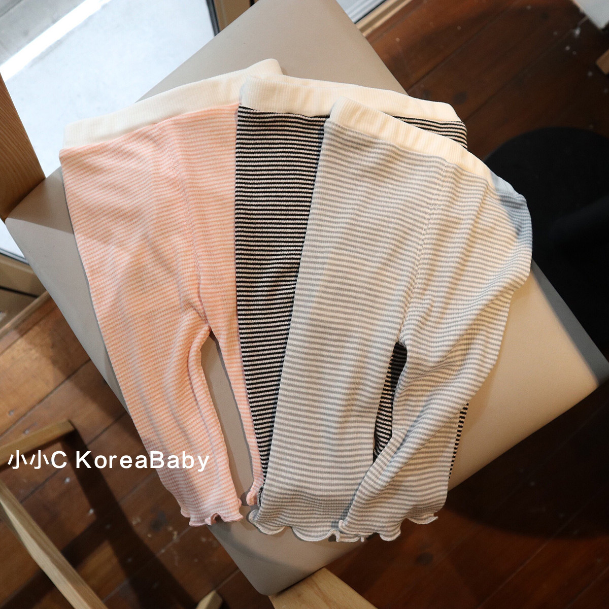 Soft glutinous striped baby pure cotton sun - proof seven - point pants for Korean baby girls dress in spring and summer new mosquito anti - mosquito nine - point pants