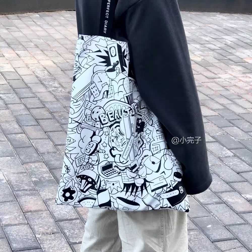 Jelly single shoulder package two pieces of graffiti canvas pack large makeup pack